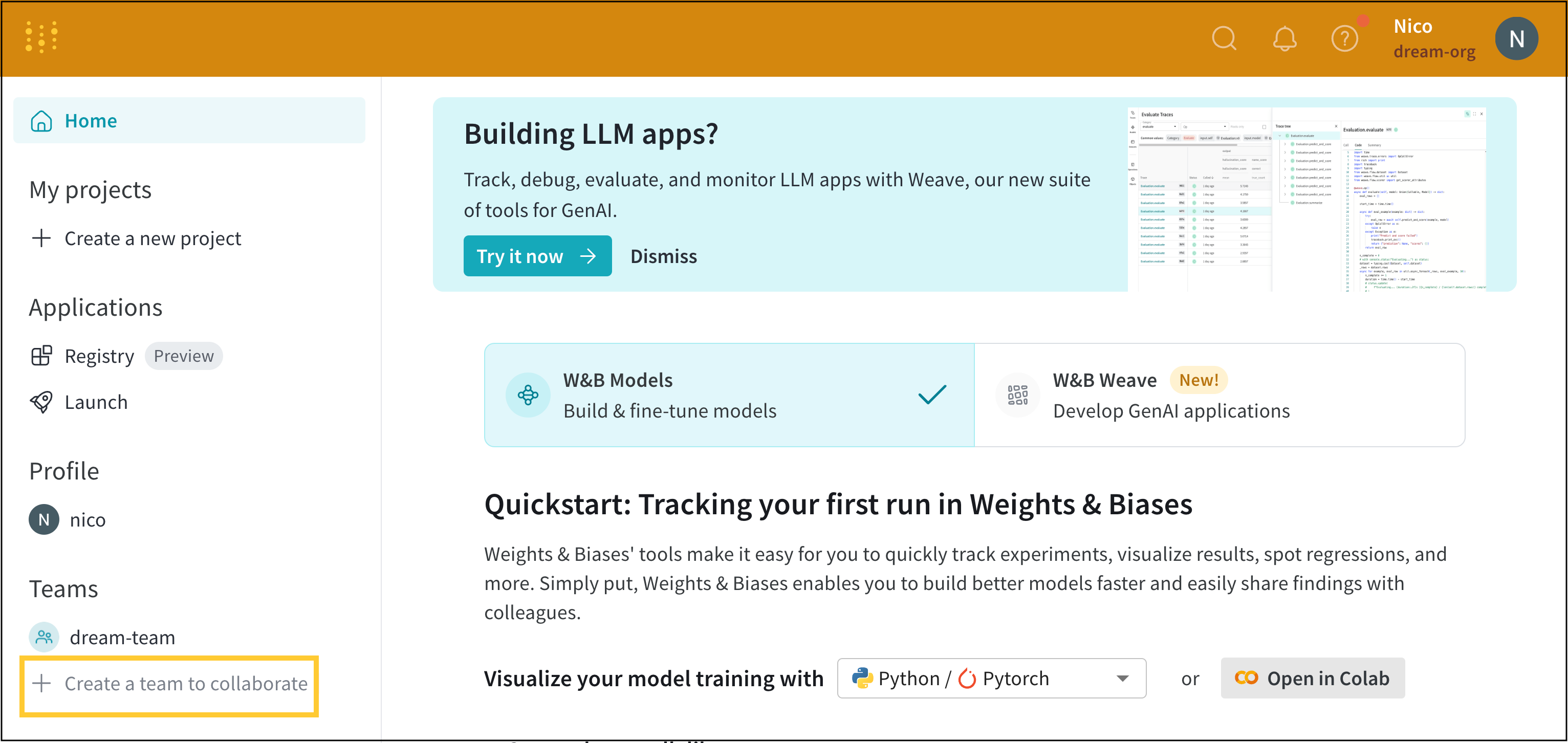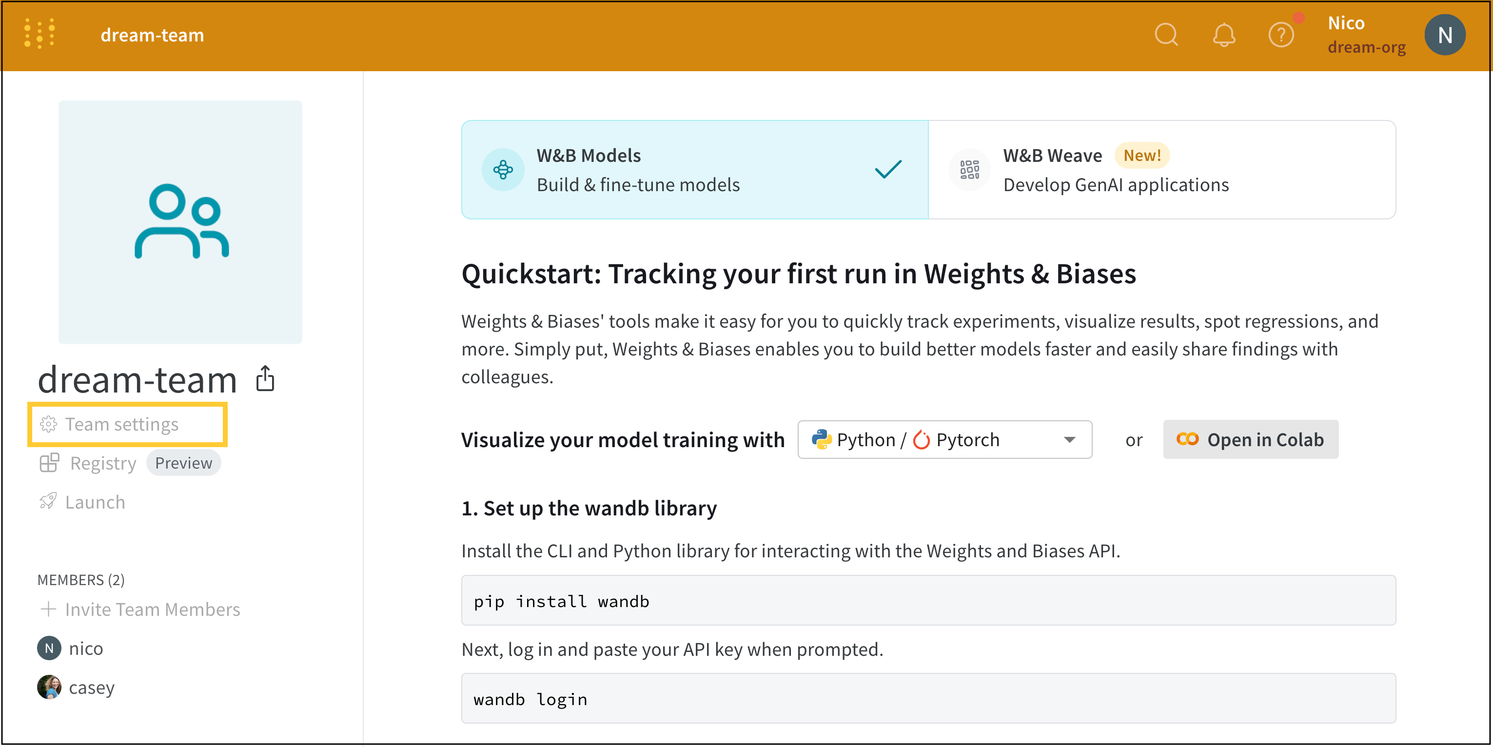 협업 툴: W&B를 사용하여 복잡한 기계학습 프로젝트를 구성합니다. W&B에 대한 링크를 쉽게 공유할 수 있으며, 비공개 Teams를 사용하여 모든 사람이 결과를 공유 프로젝트로 보낼 수 있습니다. 또한 Reports를 통한 협업도 지원합니다. 대화형 시각화 자료를 추가하고 작업을 markdown으로 설명합니다. 이것은 작업 로그를 유지하고, 지도교수와 발견한 내용을 공유하거나, 랩 또는 팀에 발견한 내용을 발표하는 좋은 방법입니다.