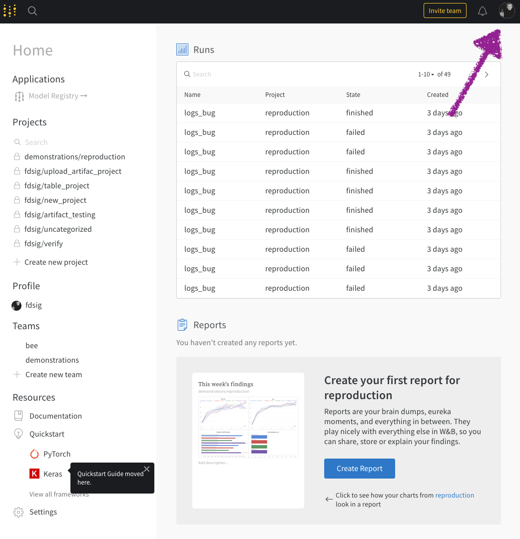 자동 구성: 협업자로부터 프로젝트를 넘겨받거나, 휴가에서 돌아오거나, 오래된 프로젝트를 다시 시작하는 경우에도 W&B를 사용하면 시도된 모든 모델을 쉽게 볼 수 있으므로 GPU 주기 또는 탄소 재실행 Experiments에 시간을 낭비하는 사람이 없습니다.