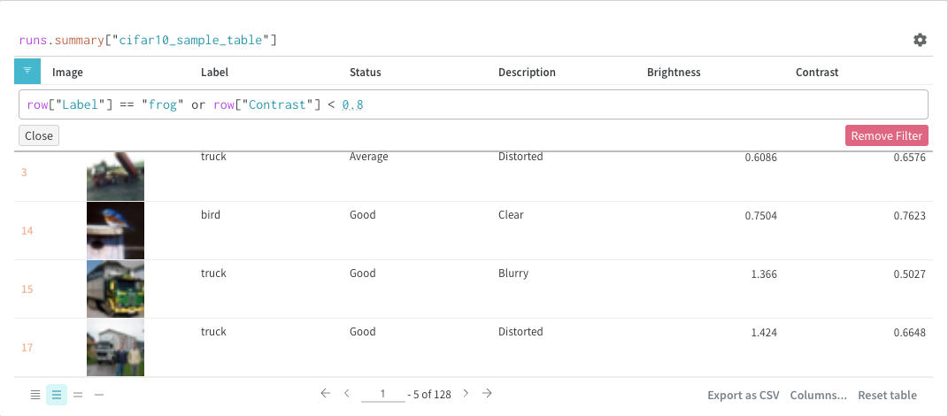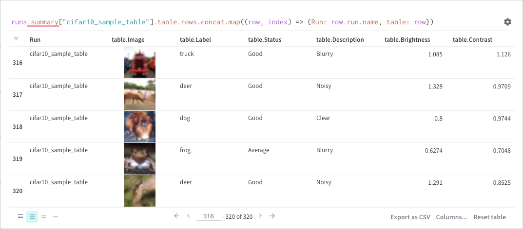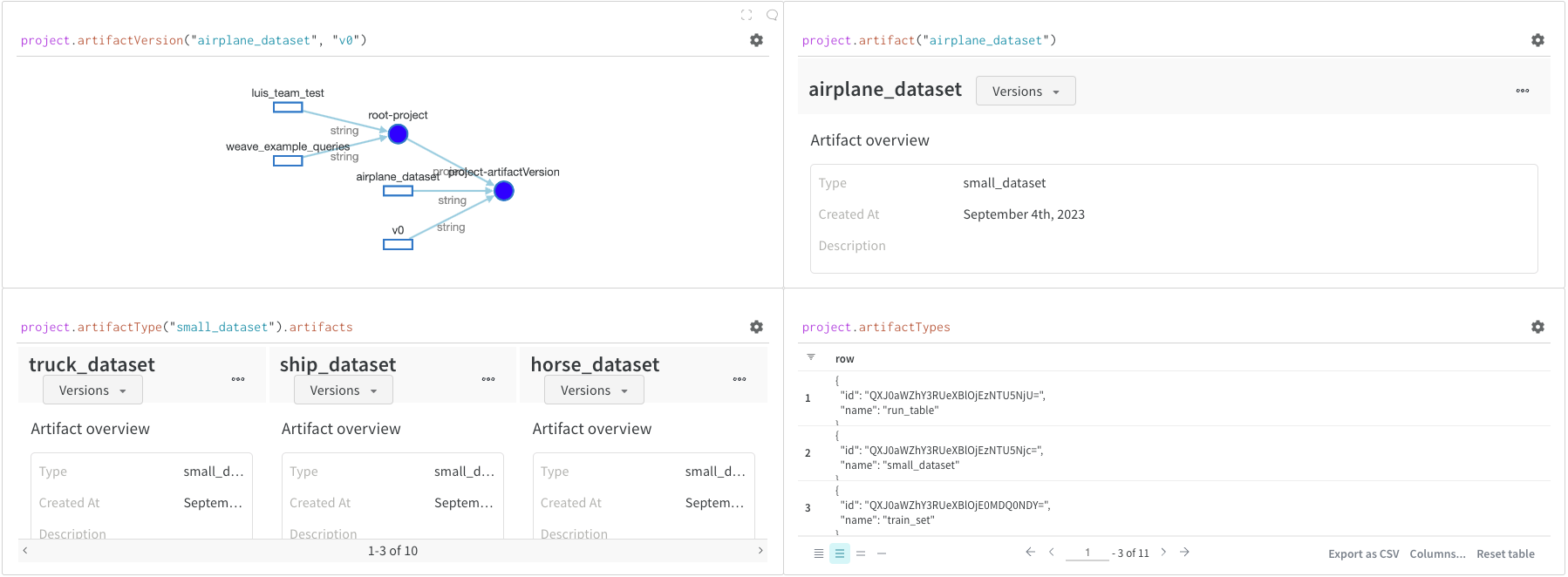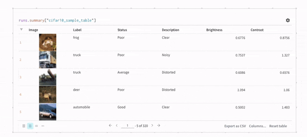 아티팩트와 연결된 테이블은 특히 풍부하고 대화형입니다. Artifacts와 함께 테이블을 사용하는 방법에 대해 자세히 알아보려면 여기를 참조하세요.