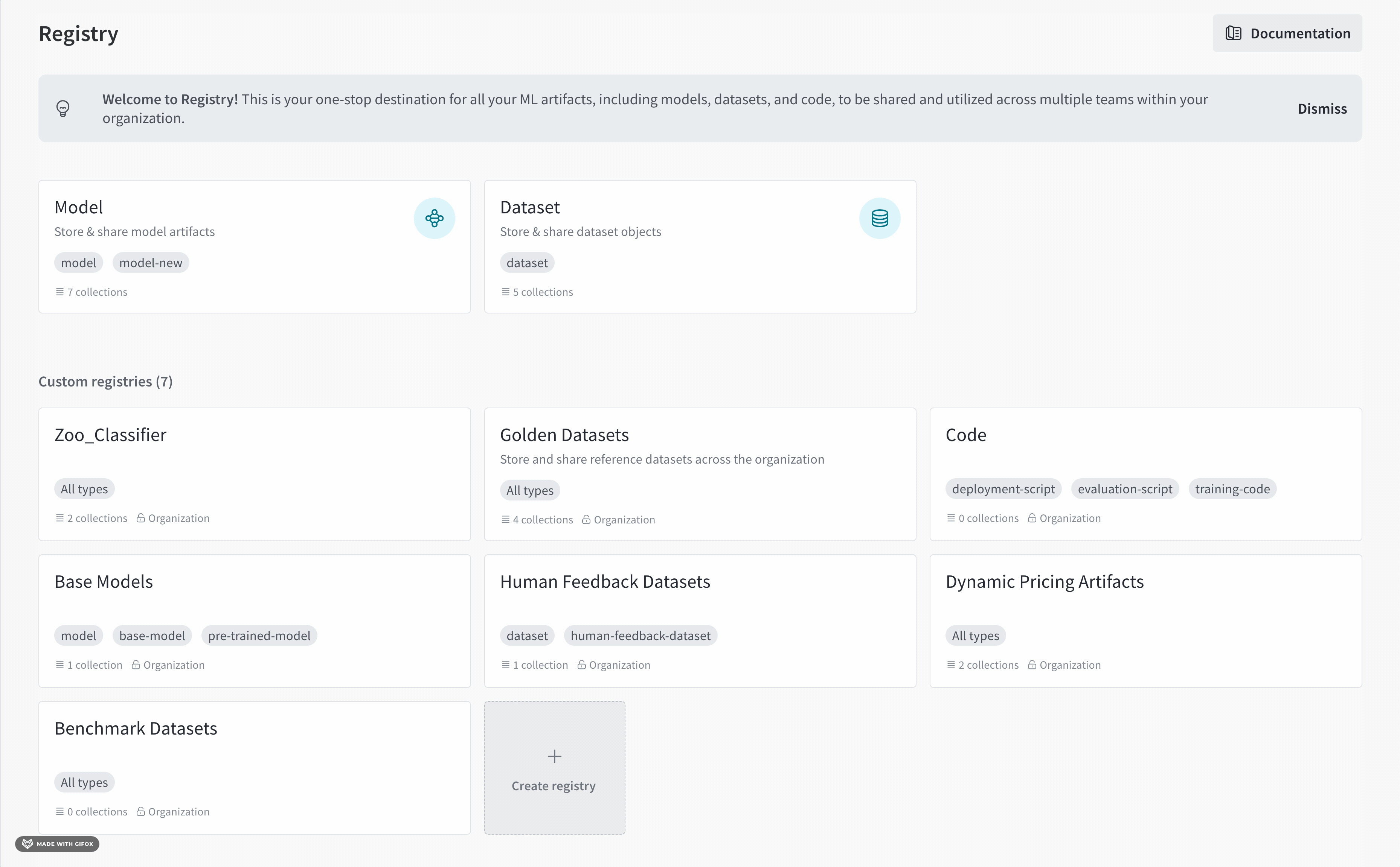 - 레지스트리 앱(https://wandb.ai/registry/)으로 이동합니다.
